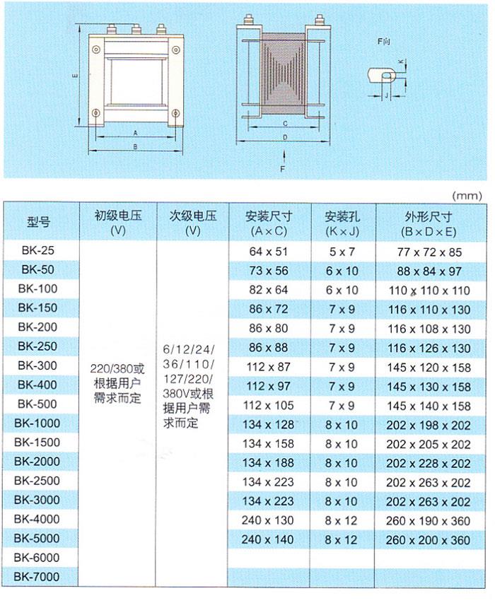 BK系列控制變壓器適用于50-60Hz的交流電路中,作為機(jī)床和機(jī)械設(shè)備中一般電器的控制電源、局部照明及指示燈電源。